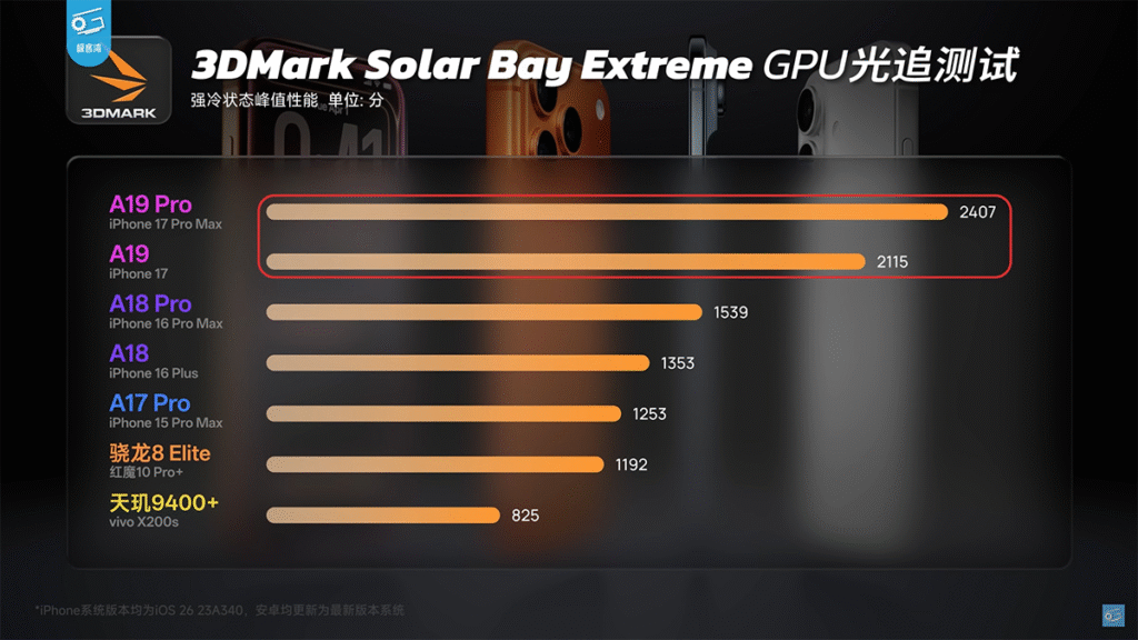 Trong các bài kiểm tra đồ họa truyền thống (rasterization), A19 Pro cho hiệu năng cao hơn 40% so với A18 Pro, trong khi A19 cũng tăng hơn 20%. Mức tăng trưởng này đã giúp A19 Pro dễ dàng vượt qua các flagship Android thế hệ trước và tạm thời giành lấy vị trí dẫn đầu về hiệu năng đồ họa di động. Apple thậm chí còn tuyên bố hiệu năng GPU trên A19 Pro có thể đạt đến “đẳng cấp MacBook Pro” trong một chiếc iPhone.